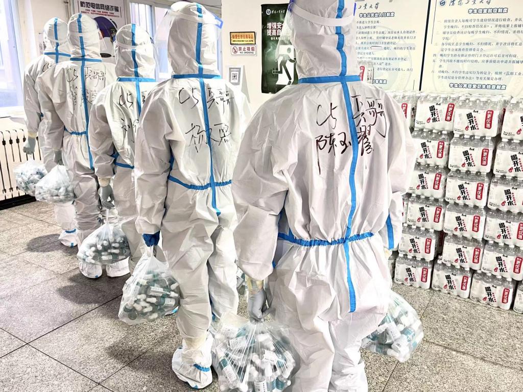 疫情发生后,学工队伍迅速集结,义无反顾冲在校园抗疫最前线。他们有的进驻宿舍和隔离点24小时陪伴守护学生,有的在寒风雨雪中协调转运学生,有的楼上楼下搬运物资,稳健有力地为学生撑起一片天。