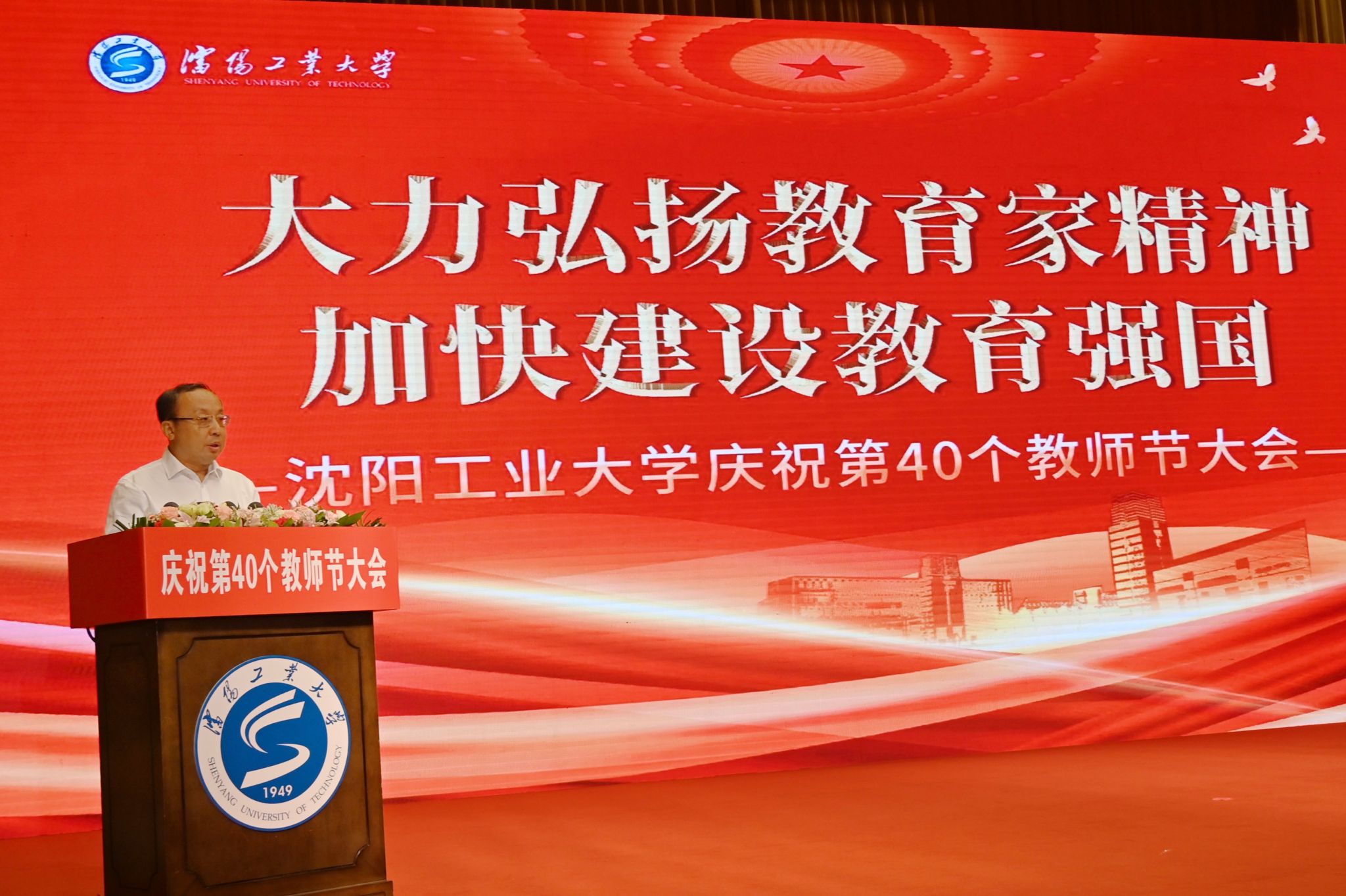 他在讲话中指出,过去一年中,全校教师坚持以习近平新时代中国特色社会主义思想为指导,深入学习贯彻党的二十大和二十届二中、三中全会精神,紧紧围绕立德树人根本任务,大力弘扬教育家精神,潜心教书育人,践行使命担当,推动学校学科建设、人才培养、科研创新等各领域工作不断取得新成绩、实现新跨越。他从四个方面深情回顾了广大教职工在学校发展中的奋斗历程。一是回望历史,倍感荣光。学校在75年的办学历程中始终与“共和国工业奠基地”同向同行,形成了优良的办学传统和宝贵的精神财富。广大教职工传承和弘扬“艰苦奋斗、自强不息”的工大精神,坚定心有大我、至诚报国的理想信念,踔厉奋发,拼搏进取,续写了工大新的辉煌。二是守护初心,无怨无悔。广大教师胸怀立德树人初心,坚守三尺讲台,满腔赤诚,孜孜不倦,严谨治学,从严执教,培育了万千学子,成就了今日学校桃李芬芳遍天下。三是扛起重担,砥砺前行。聚焦一流大学建设目标,围绕“四大战略”“六项工程”任务部署,育英才、强科研、促发展,内涵建设关键领域实现突破,学校综合实力持续上升。四是助推振兴,贡献力量。锚定辽宁新时代“六地”目标定位,优化科技创新方向,加快“卡脖子”技术难题攻关,加速科技成果转化,助力辽宁装备制造业产业转型升级,为辽宁全面振兴贡献了工大智慧和力量。