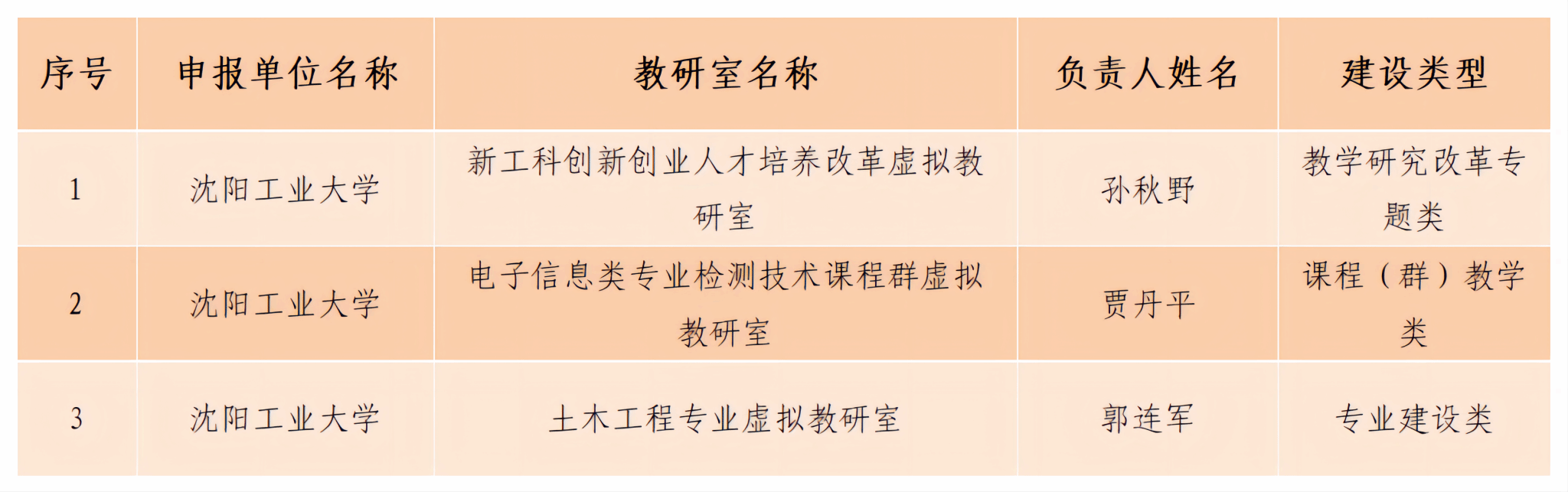 ▲首批辽宁省普通高校示范性虚拟教研室建设名单