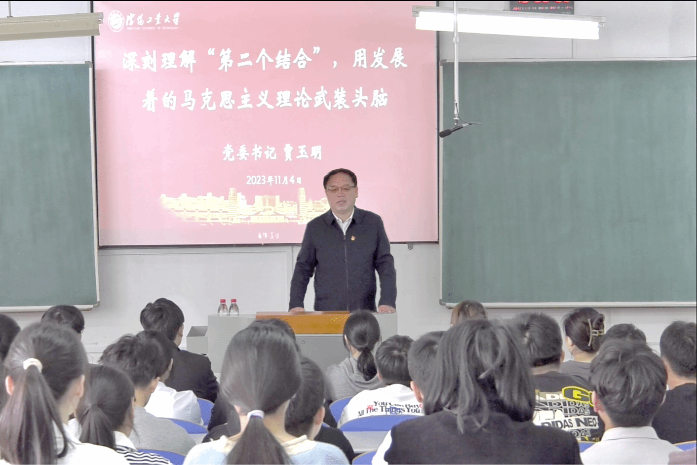 11月4日,党委书记贾玉明以“深刻理解‘第二个结合’,用发展着的马克思主义理论武装头脑”为题,为信息科学与工程学院学生讲授了一堂生动精彩的思政课。