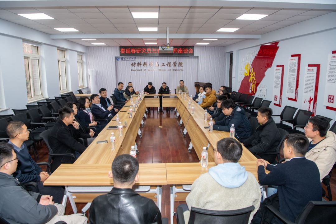 “铸魂讲堂”结束后,娄延春研究员与学院青年教师进行了深入交流和座谈。青年教师纷纷表示要以优秀校友娄延春研究员为榜样,将科学家精神和工匠精神传承并发扬到科学研究和教书育人中,为学院高质量发展贡献青春力量。