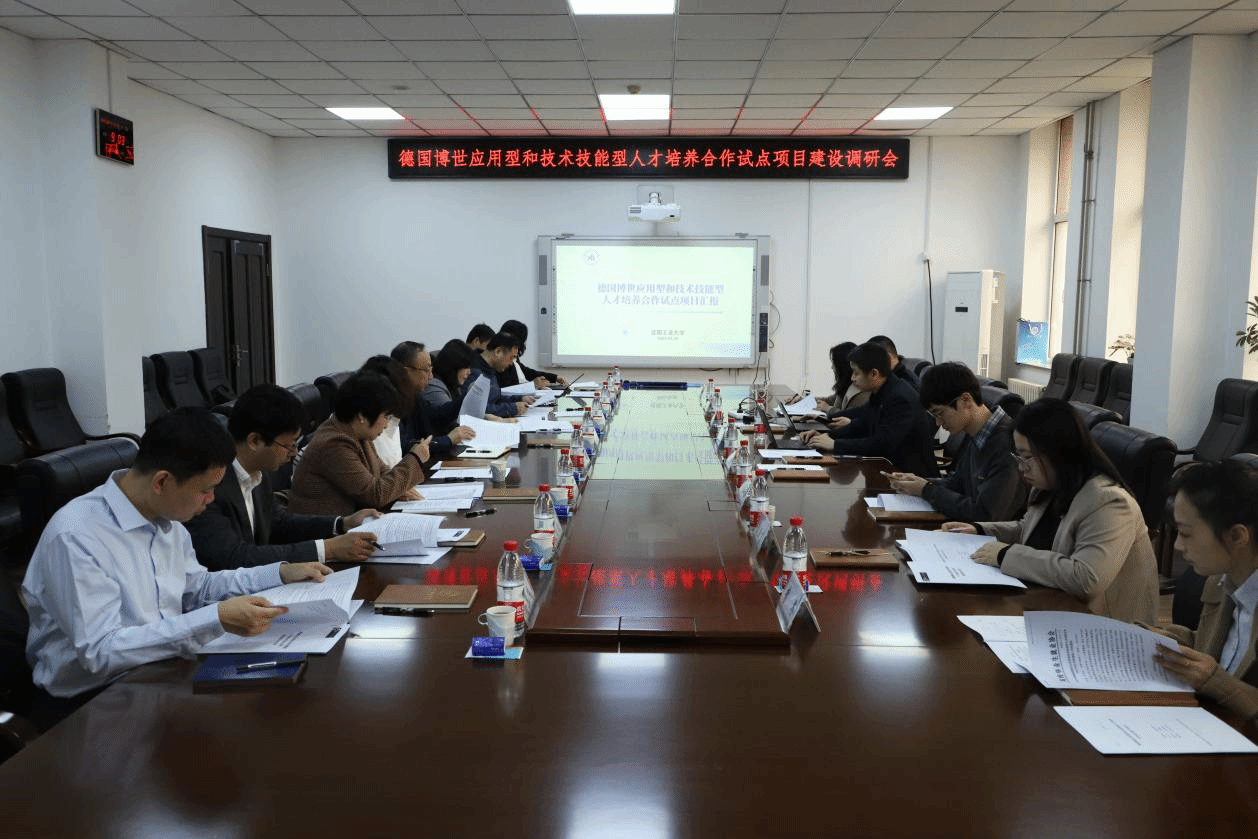 人工智能学院执行院长张志佳详细阐述了学院的总体情况,并在学科交叉、校企协同育人、应用型人才培养等方面进行了深入交流。学院教学副院长张晓玲围绕拟共建的工业智能专业进行了专题汇报,详细介绍了该专业的基本情况、基础设施条件、校企合作基础、项目实施计划以及保障措施等。德国博世项目组潘涛、杨建林两位专家对项目背景及基地建设方案进行了详尽的阐述。我校教务处、国际合作处、创新创业部门及实训中心负责人,与项目组专家进行了关于项目合作事宜的详细探讨。
