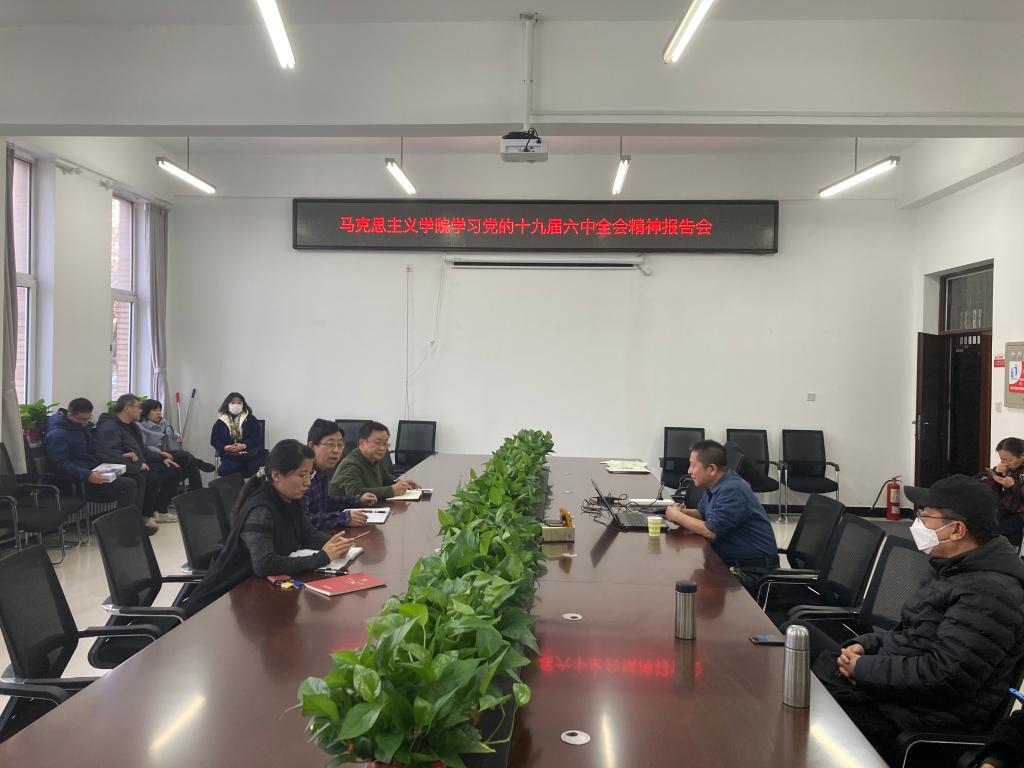 11月24日,马克思主义学院在文科楼124会议室召开学习党的十九届六中全会精神报告会,曹延汹教授作专题辅导报告。学院全体领导班子成员、教师代表等四十余人参加了报告会。