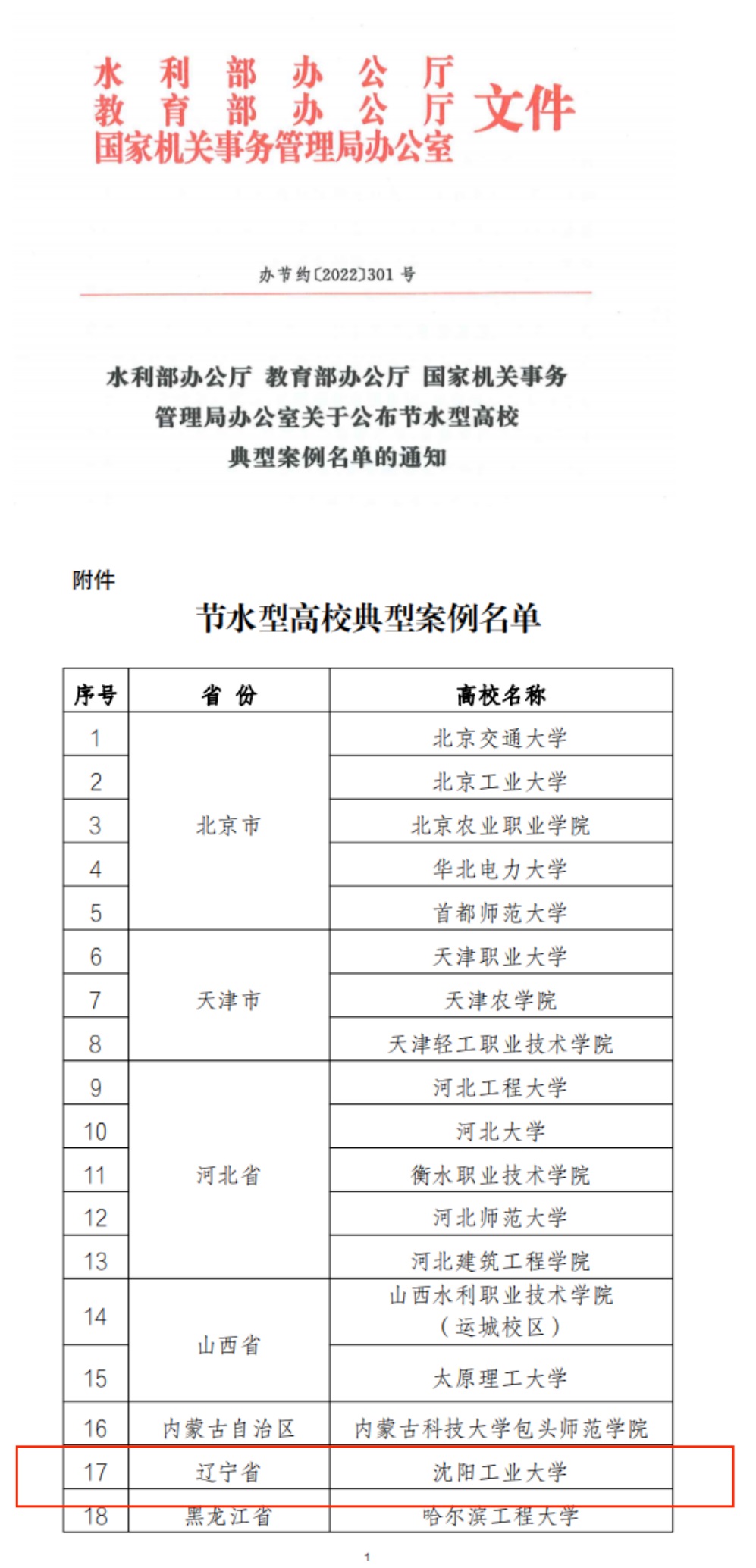 近日,水利部办公厅、教育部办公厅、国家机关事务管理局办公室联合发文公布全国节水型高校典型案例名单,国产高清在线精品一区二区三区上榜,成为辽宁省唯一一所成功入选的高校。