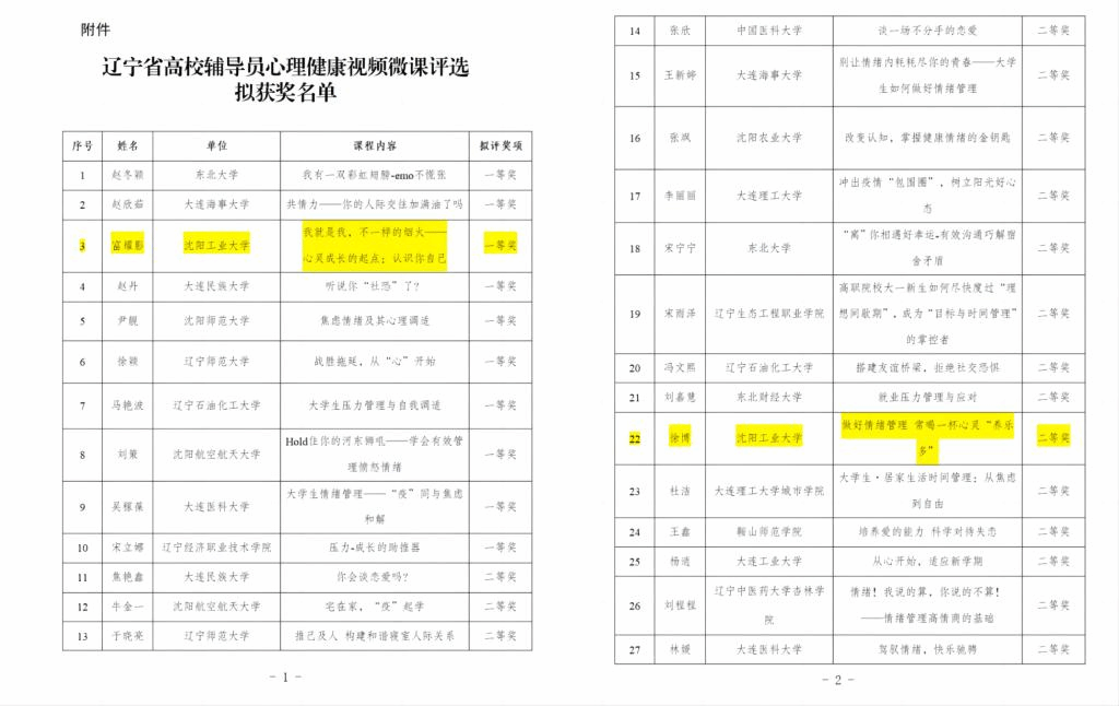 我校在辽宁省高校辅导员心理健康视频微课评选中荣获一等奖-国产高清在线精品一区二区三区官方网站