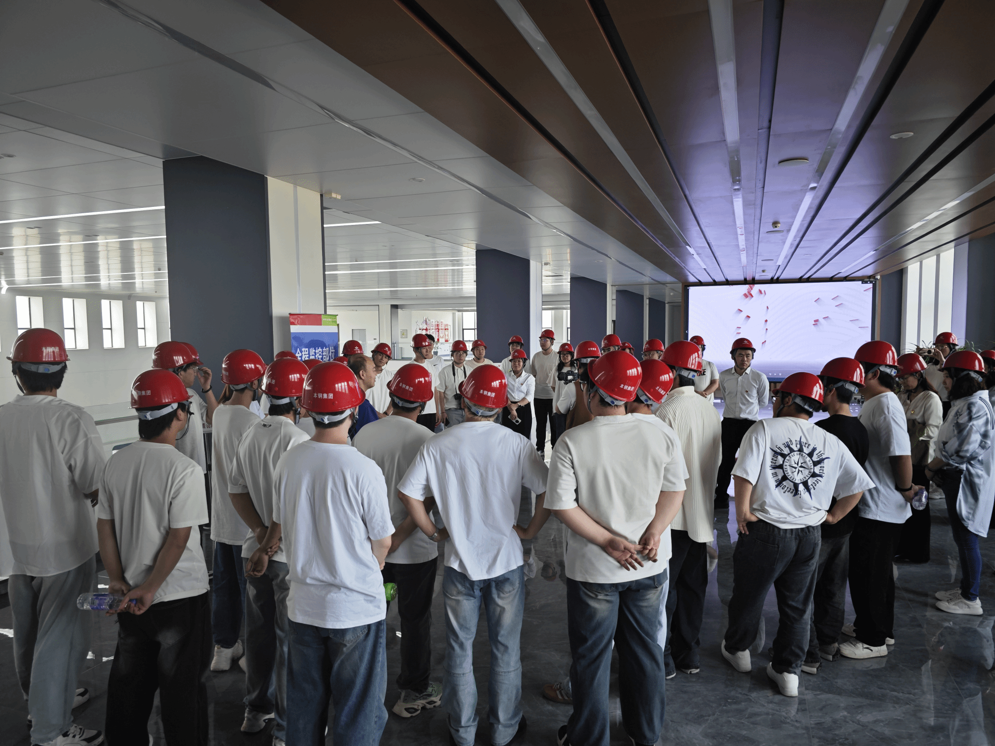 最后一站,在CCPP发电项目中心会场,师生们迎来了一场意义非凡的“沉浸式思政课堂”。会场大屏亮起,播放着习近平总书记于2025年1月亲临本溪市考察本钢板材冷轧总厂第三冷轧厂的视频资料。画面中,总书记深入集控中心、冷轧车间,与劳动模范、青年技术骨干、一线职工代表亲切交谈。习近平总书记强调“钢铁产业是我们国家的重要基础产业,实体经济是国民经济的根基所在。要继续努力,把短板补上,把结构调优,继续为中国式现代化多作贡献。”