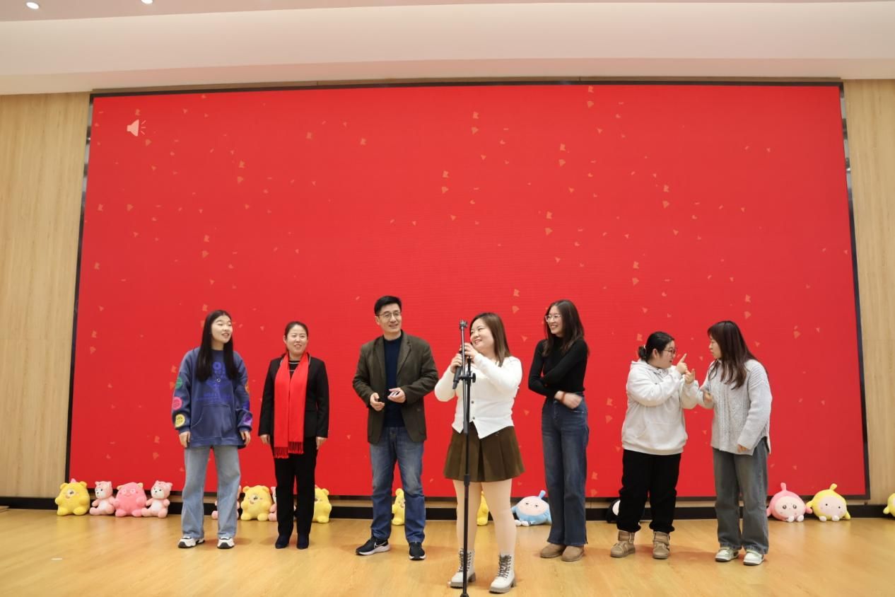 联欢活动中,师生通过独唱、合唱、吉他弹唱、京剧、朗诵、三句半、游戏互动等节目形式,营造出积极向上、喜庆热烈的和谐氛围。由马克思主义学院领导班子和各教研室带来的歌曲《外面的世界》《你笑起来真好看》《我和我的祖国》《万疆》,歌声中流露出的充沛情感引起了现场观众的强烈共鸣;京剧表演《打虎上山》、朗诵表演《毛主席诗词》以及三句半表演《庆元旦话院建》亮点频出,收获了现场观众的热烈掌声。同时,同学们带来的歌曲《大鱼》《星空剪影》《找自己》《爸爸妈妈》以及诗朗诵《我喜欢出发》《沁园春·长沙》引发全场的阵阵欢呼。此外,学院为全体师生准备了丰富的新年伴手礼,为联欢会增添了温馨祥和的节日气氛,会场内欢声笑语不断。
