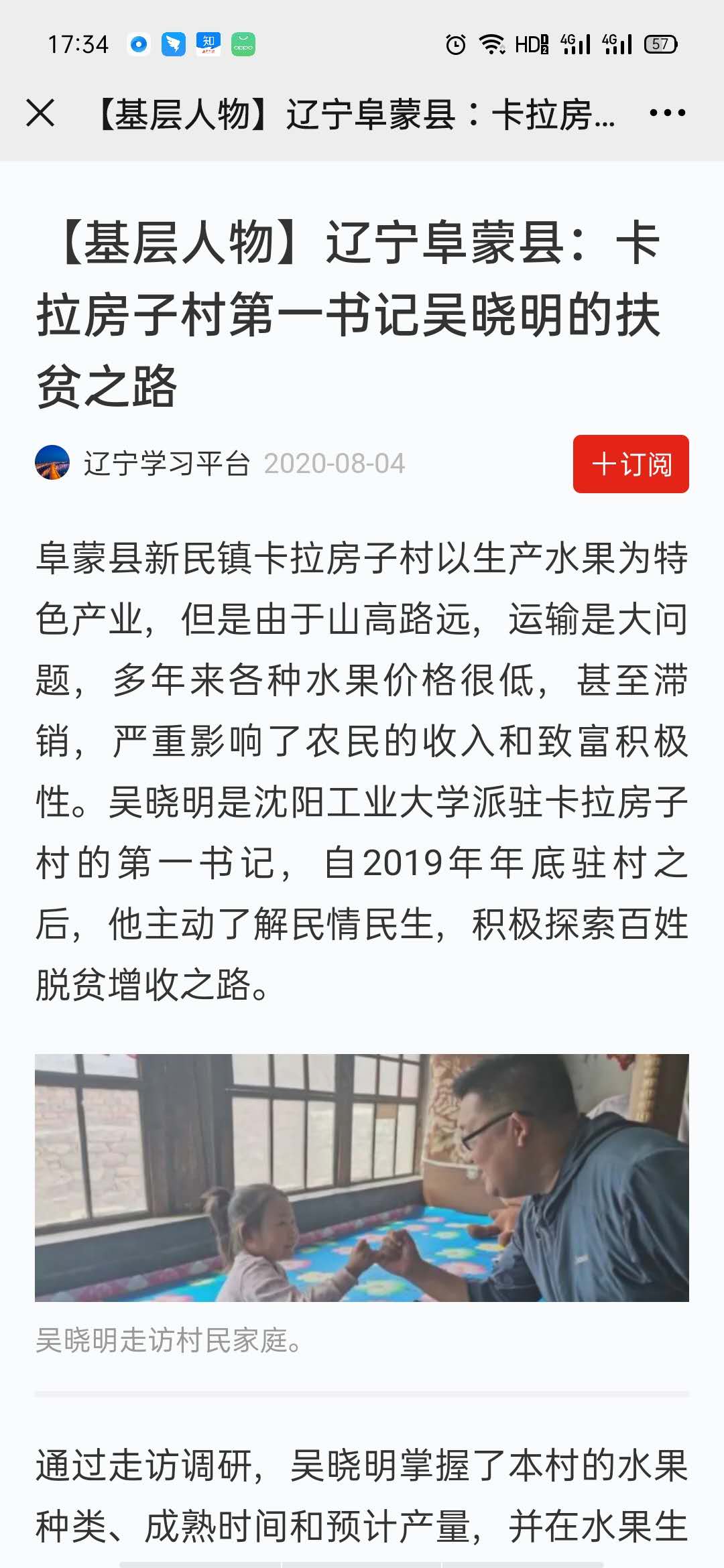 2020年8月4日,学习强国以“【基层人物】辽宁阜蒙县:卡拉房子村第一书记吴晓明的扶贫之路”为题报道了我校驻卡拉房子村的第一书记吴晓明,自2019年年底驻村之后,他主动了解民情民生,积极探索百姓脱贫增收之路。