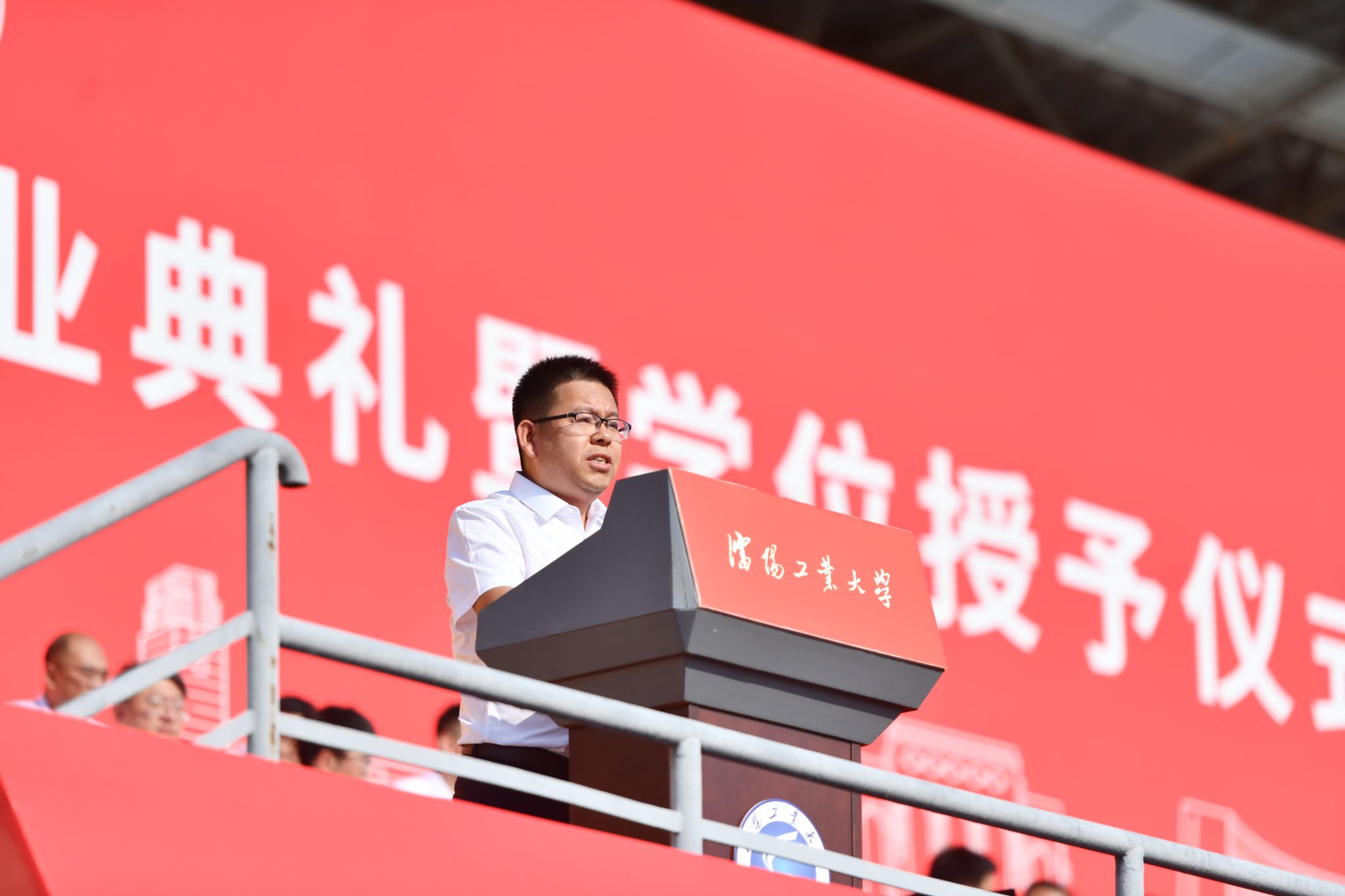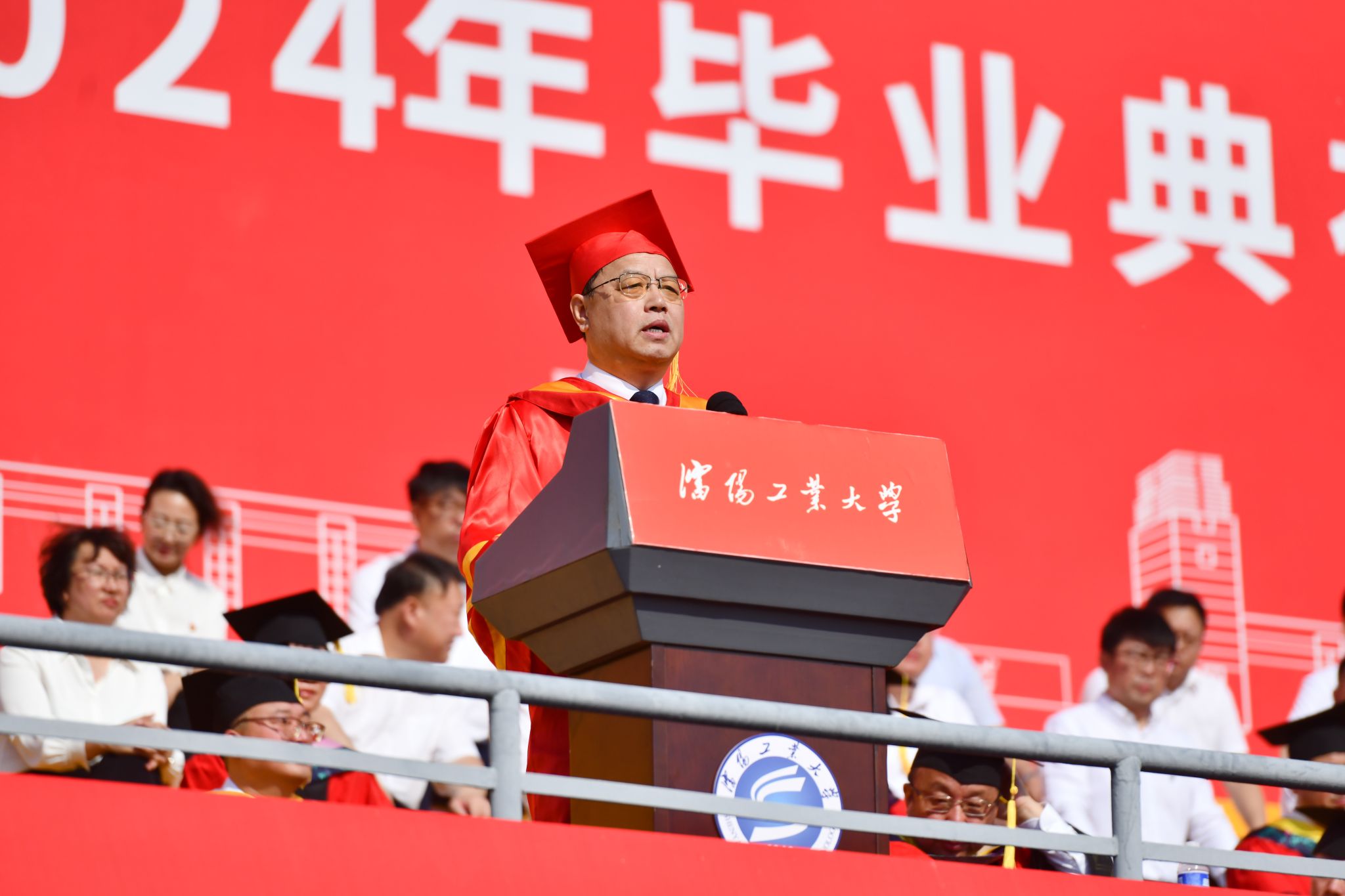 贾玉明深情回顾了毕业生们在校期间青春记忆中的闪耀瞬间,盘点了全校师生共同经历的一场场重要考验,细数了学校在“双一流”建设中取得的一项项重大发展成就。他表示,过去几年,广大学子以奋发向上的精神面貌与学校携手逐梦,共同进步,亲历并见证了学校发展进程中的重要历史时刻,学校开拓进取,创新发展,综合排名稳步提升,社会影响力不断扩大,向同学们展示了一个更显颜值、更具底蕴、更有温度、更富实力的沈工大。