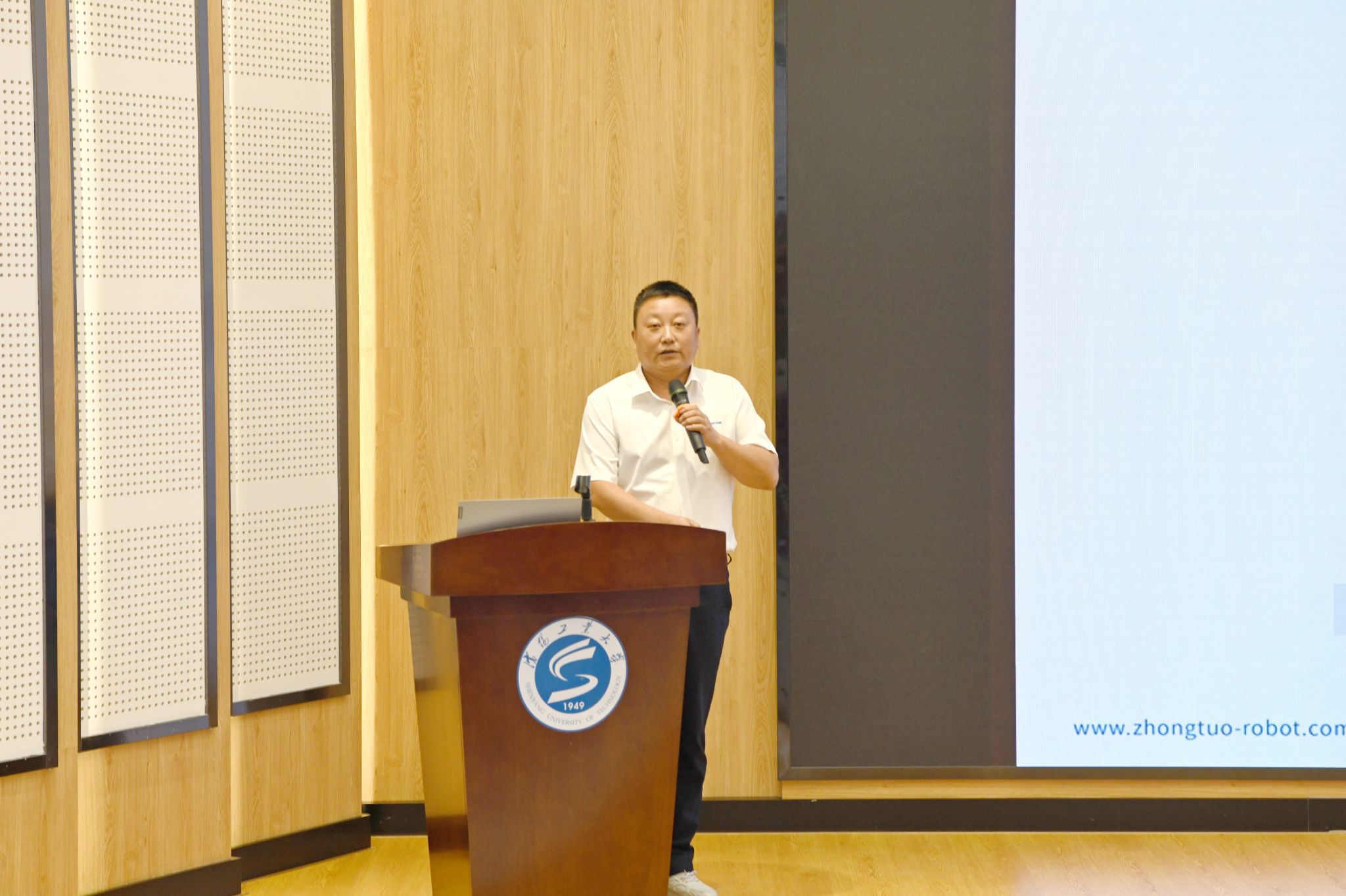 沈阳众拓机器人设备有限公司联合创始人、总经理、我校校友李哲围绕“普及工业机器人应用 助力辽沈振兴”,介绍了工业机器人在辽沈地区的应用现状,详细分析了未来机器人产业发展趋势以及机器人助力辽沈经济发展的优势前景。