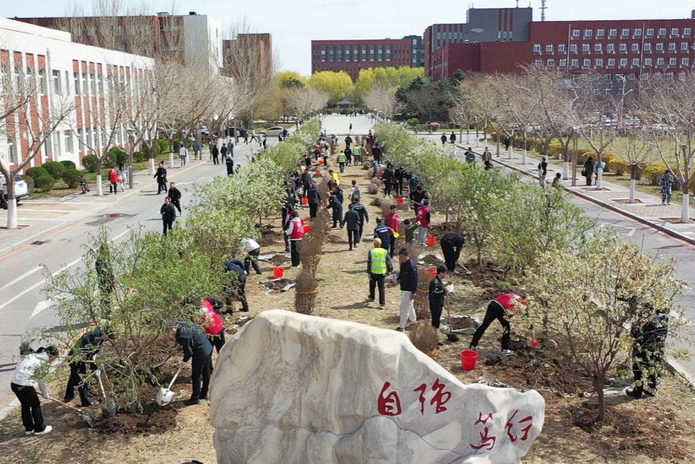 活动现场,师生们分工协作、配合默契,有的挥锹铲土,有的扶苗填坑,有的提水浇灌,一株株文冠果、欧丁香在校园里“落地生根”。微风拂过,粉红色的文冠花朵随风摇曳,丁香、杜鹃迎风而立,为美丽的校园增添生机与活力。